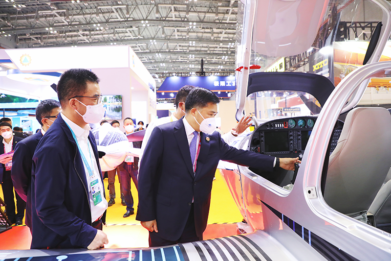11月6日,商務(wù)部黨組成員、副部長(cháng)盛秋平,商務(wù)部服貿司司長(cháng)、進(jìn)博會(huì )組委會(huì )秘書(shū)處副秘書(shū)長(cháng)王東堂參觀(guān)進(jìn)博會(huì )萬(wàn)豐鉆石飛機展位,新昌縣副縣長(cháng)李江陪同參觀(guān)。